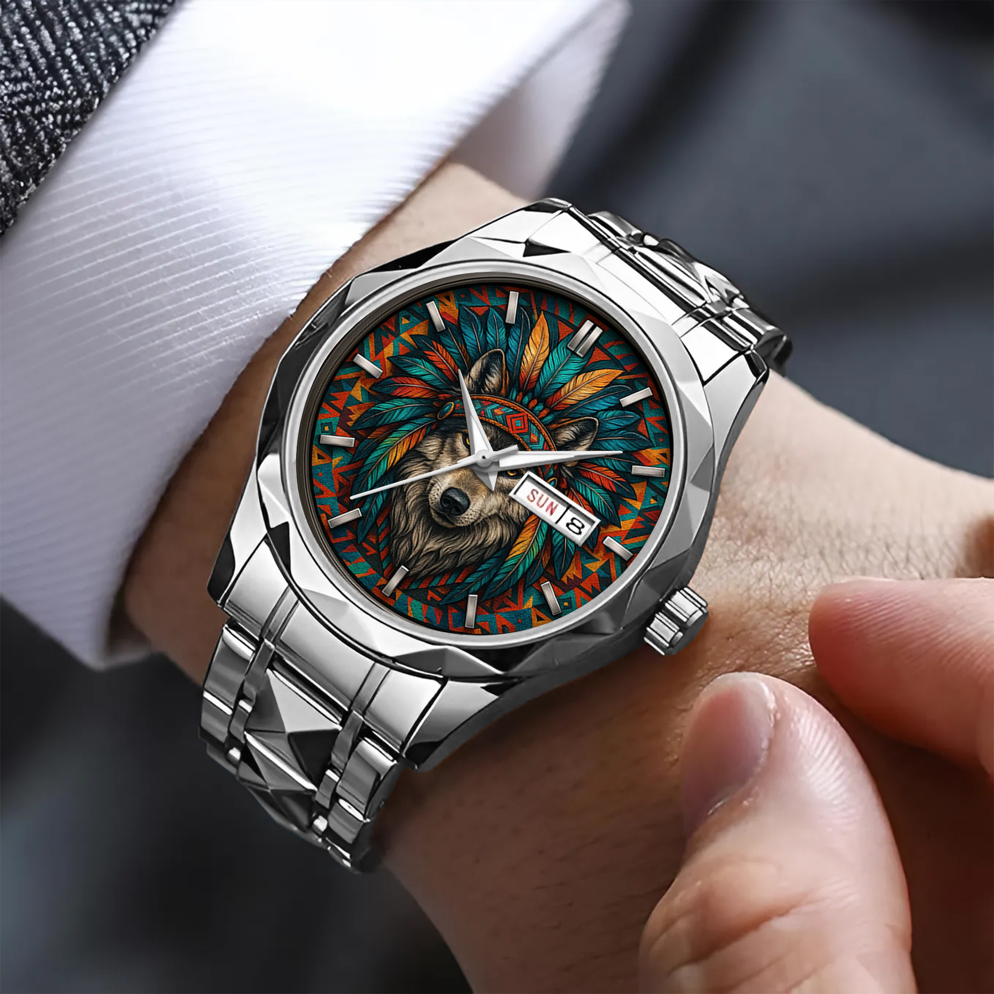 Convenient built-in day and date window keeps you organized at a glance.